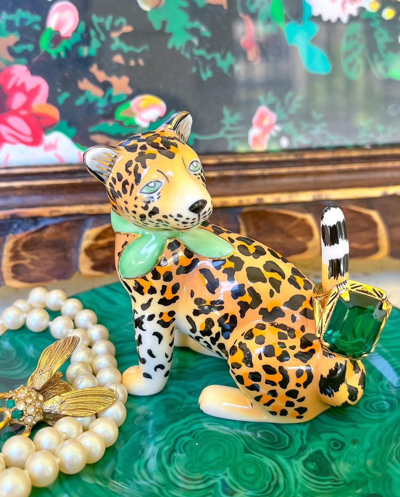 Lynn Chase Jaguar Jungle ring holder. An HGC Vintage favorite. He’s darling and waiting to help you never lose that special ring. Excellent condition. 3.25”h 3”w